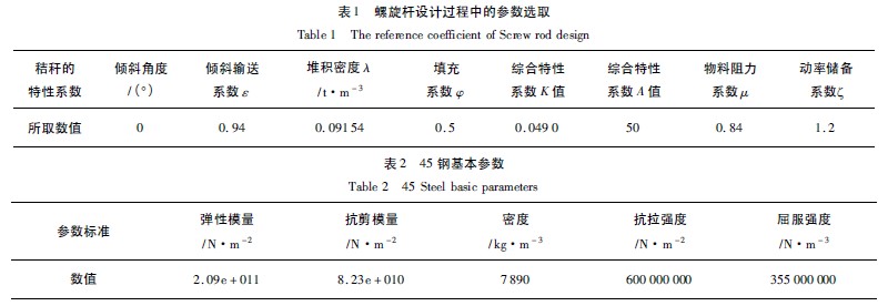 螺旋给料机基本参数的设定,根据操作平台的实际情况并且参考有关资料,初步将螺旋轴叶片外直径设定为70mm,长度为300mm,与其相配合的外壳直径约为110mm,进出料口中心距300mm,螺旋叶片同管壳内壁径向间隙为5mm,轴向间隙为1.5mm。其它参数的设计参考表1物料特性系数[3]。